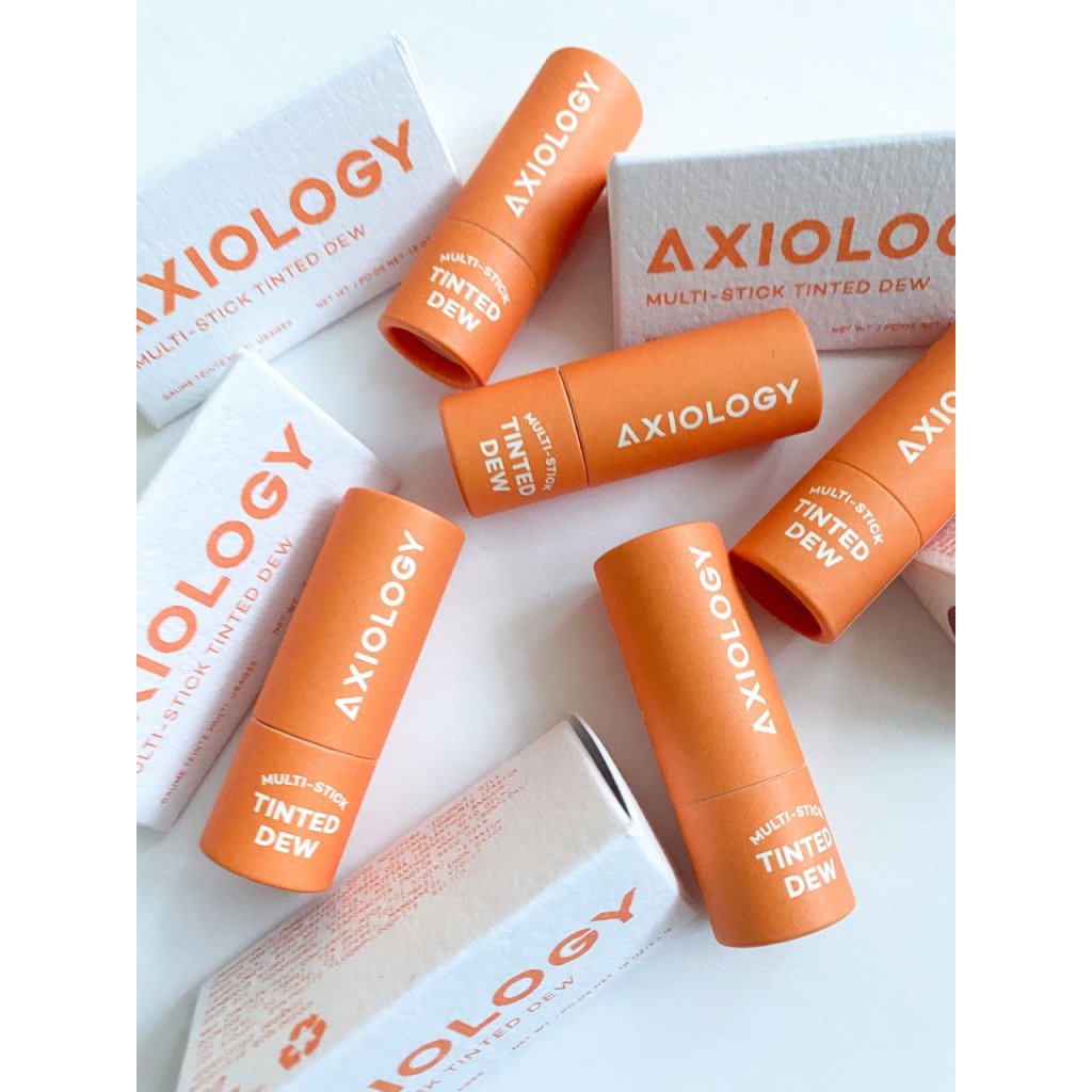 Axiology Rozjasňující tónovací a hydratační rtěnka je balena v kompostovatelném papírovém obalu a tvořena jen z 10 pečlivě vybraných, přírodních ingrediencí. Kokosový, avokádový a hroznový olej spolu s bambuckým máslem vyživují, regenerují a zanechávají rty i pokožku hebké a hydratované.